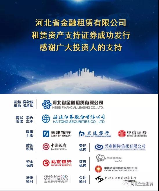 關注 | 河北金租15.65億元資產證券化產品成功發行