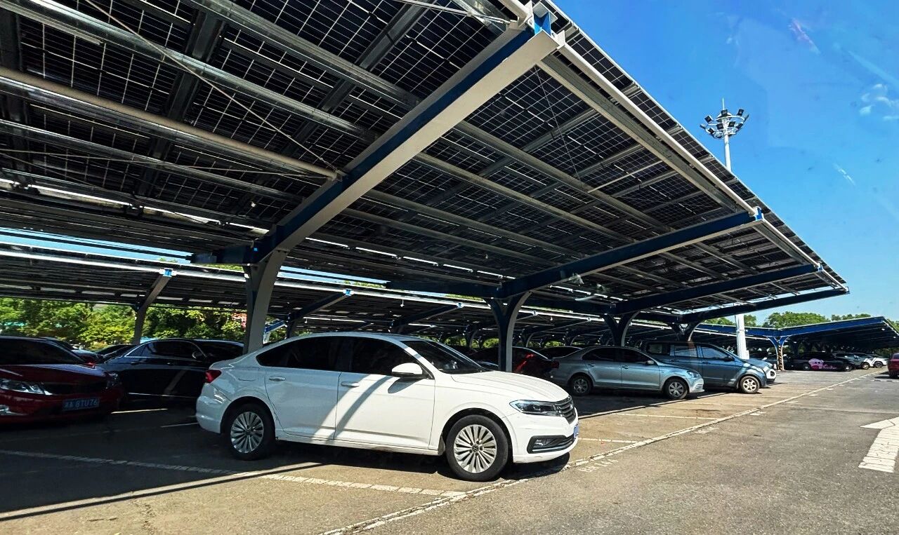 在石家莊北國奧特萊斯購物中心,停車場的車棚悄然變身“屋頂電廠”。一排排光伏板在上方整齊鋪展,不新占一寸土地、不減少一個車位,這些光伏板將陽光持續轉化為清潔電力,為商場注入源源不斷的綠色動能。